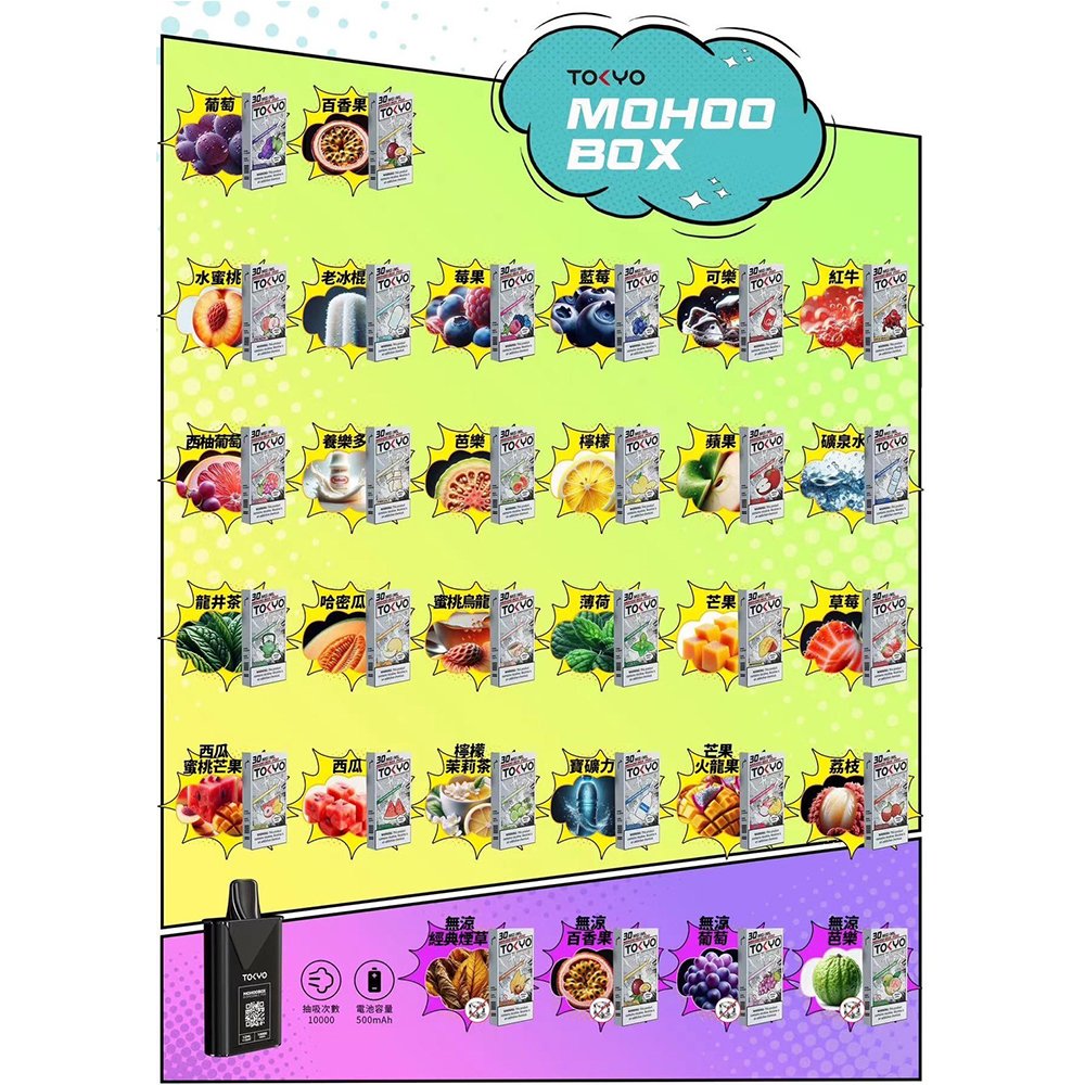 東京魔盒主機以日系簡約風格設計,精選鋁合金材質打造僅 35.25g 的輕盈機身, 配備清晰 OLED 屏幕和便捷 Type-C 快充接口,40-60 分鐘即可快速充滿 500mAh 大容量電池, 提供持久續航體驗。提供 10 種時尚配色選擇,搭載智能溫控系統和專利防漏技術,專用魔盒糖果, 超過 30 種口味選擇,每一口都細膩純正。![]()